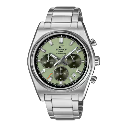 Introducing the EDIFICE motorsports chronograph inspired by the classic sportscar. Striking index bars join the legendary 3-6-9 inset dial layout in a time-honored sporty design. The smaller diameter of the case presents an elegant look of sheer speed. With sapphire crystal, stainless-steel case, and substantial stainless-steel band, this timepiece is water resistant up to 10 bars. This sporty, classic chronograph takes you from casual settings to business meetings in a split second.