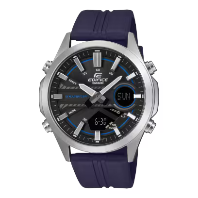 Free yourself to focus on life. Get the EFV-C120 analog-digital combination timepiece with a 10-year battery you won’t have to worry about for ages. The EFV-C120 takes up where the EFV-C110 left off, with all the advantages of an analog-digital combination watch and long battery life, but in an even more compact, streamlined design. You’ll love the rich variety of functions, including world time, stopwatch, alarm, countdown timer, and water resistance up to 100 meters.