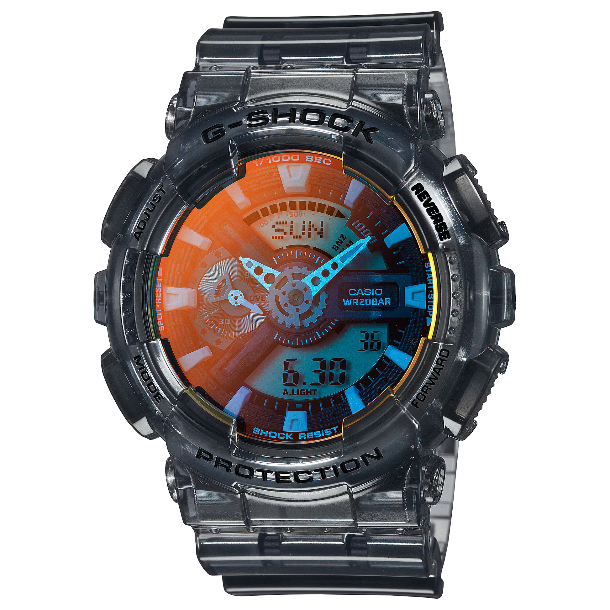 Set your mood to summertime and easy with a radiant G-SHOCK featuring a watch face in eye-catching color. This special vapor deposition process reflects various hues of light, capturing the vistas of the ever-changing seaside. These beach-inspired designs come in two color schemes — fresh white and blue evoking sun-drenched white sandy beaches, and cool translucent grey and orange conjuring the serenity of the beach at dusk. Thanks to this special coloring process, each watch shines with a different radiance for a one-of-a-kind look that is truly your own. Choose your beach look in any of three popular G-SHOCK shapes — the DW-5600 with its iconic form, the octagonal GA-2100 and the GA-110 with large case. With dynamic color expressions that change depending on the viewing angle, these cool, fashionable watches add a bold accent to any style.