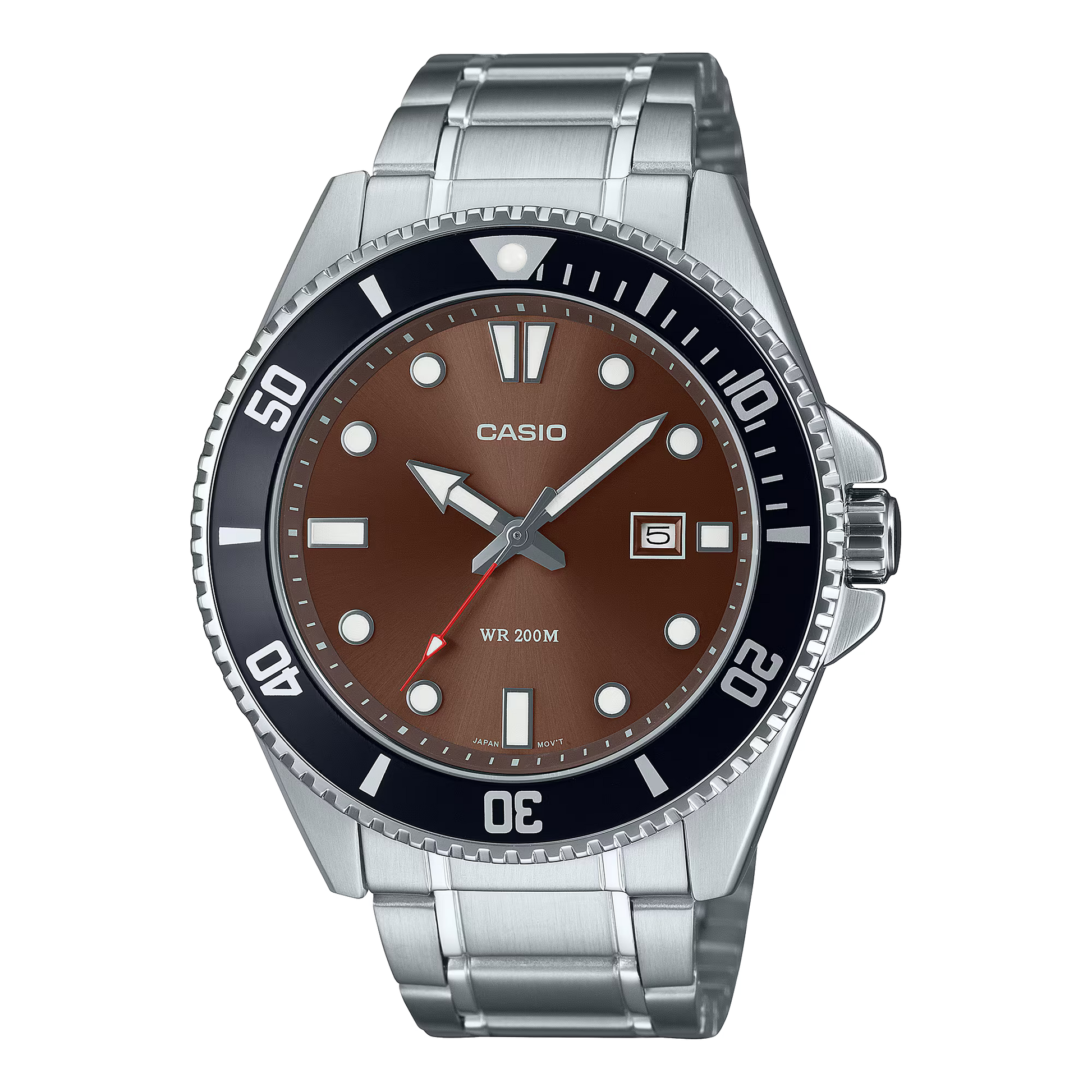 Take your full-metal analog style straight to the water. With water resistance up to 200 meters, a unidirectional rotating bezel, and screw-lock case back, this is a timepiece ready for whatever ocean sports or marine activities you are into. The sporty, yet classic design also features a handy date display, bringing practical utility to fashionable style.