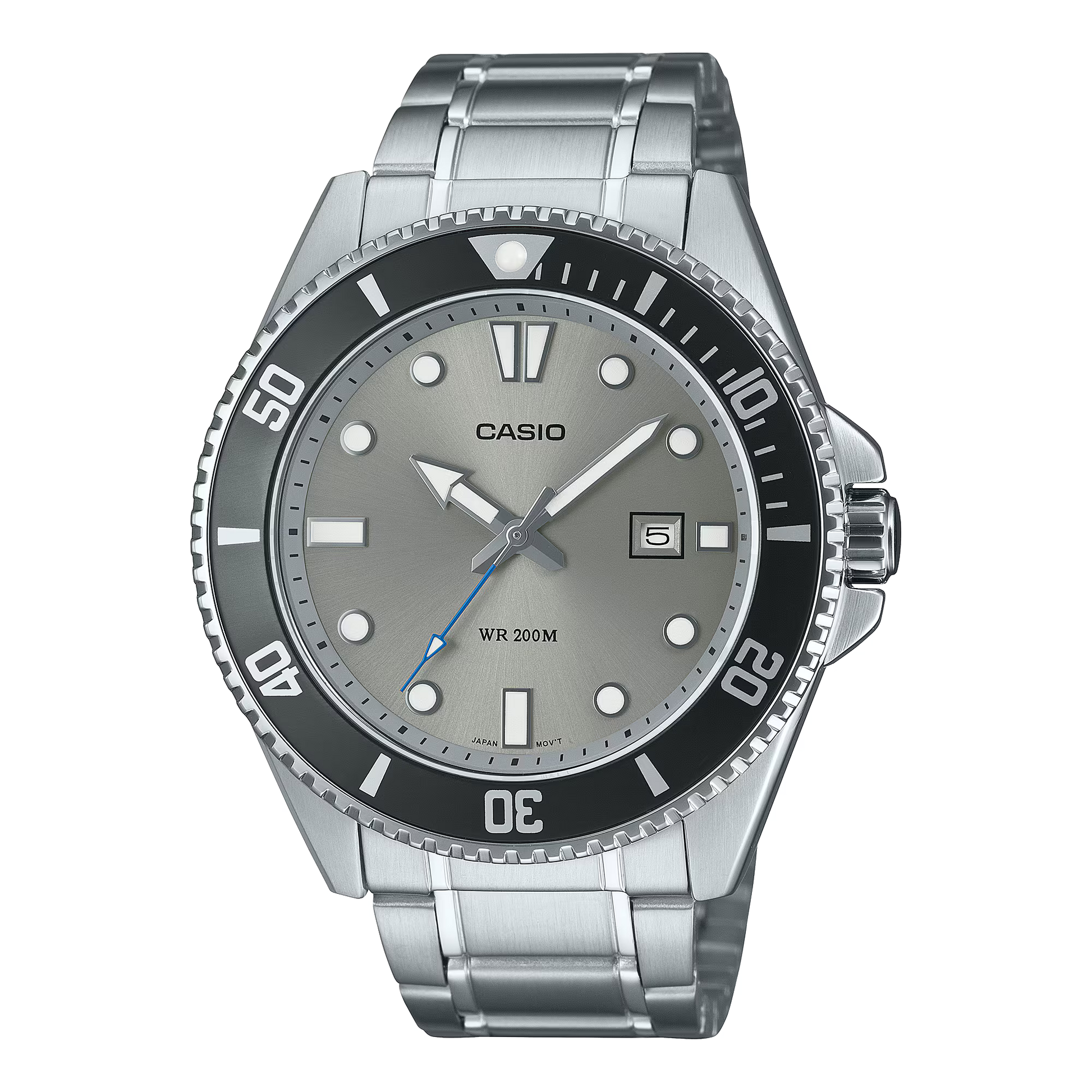Take your full-metal analog style straight to the water. With water resistance up to 200 meters, a unidirectional rotating bezel, and screw-lock case back, this is a timepiece ready for whatever ocean sports or marine activities you are into. The sporty, yet classic design also features a handy date display, bringing practical utility to fashionable style.