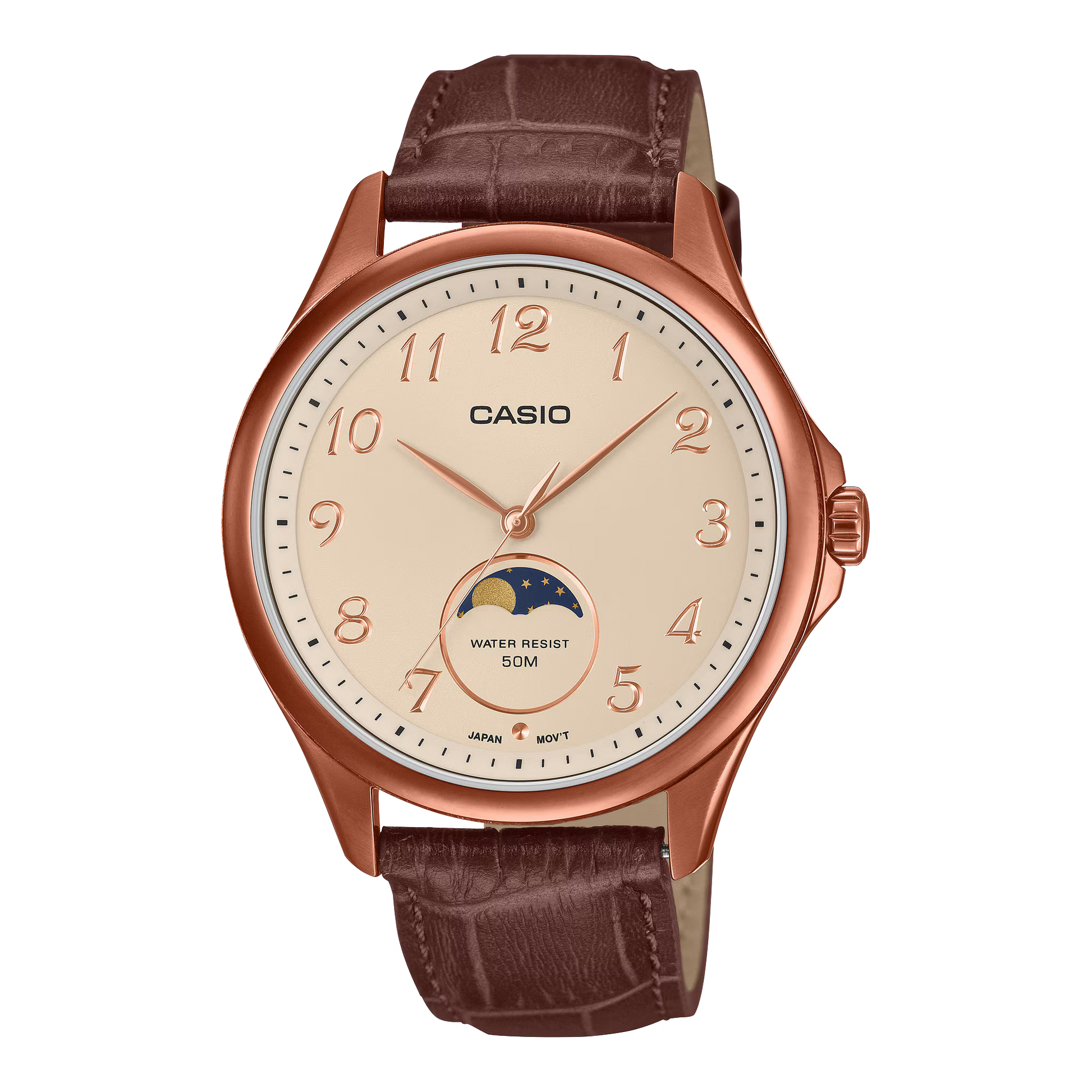 ・Classic design ・Moon phase indicator ・50-meter water resistance